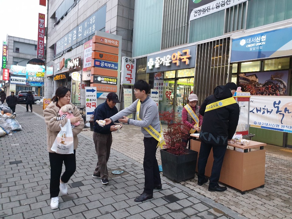 대구대서신협의 조합원농장에서 키운 무공해 작물들을 나누어드리고있습니다.