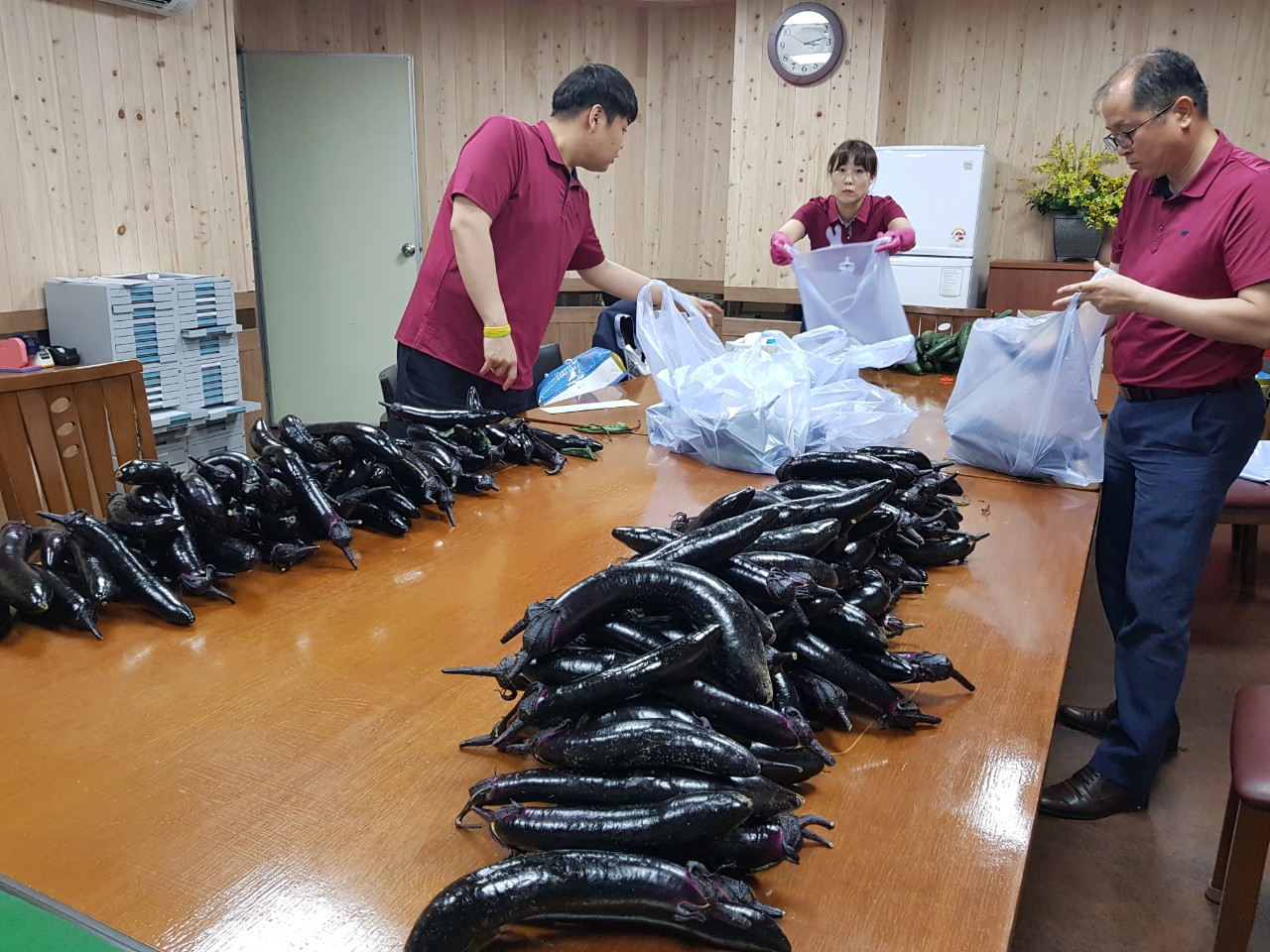 대구대서신협의 조합원농장에서 키운 무공해 작물들을 나누어드리고있습니다.