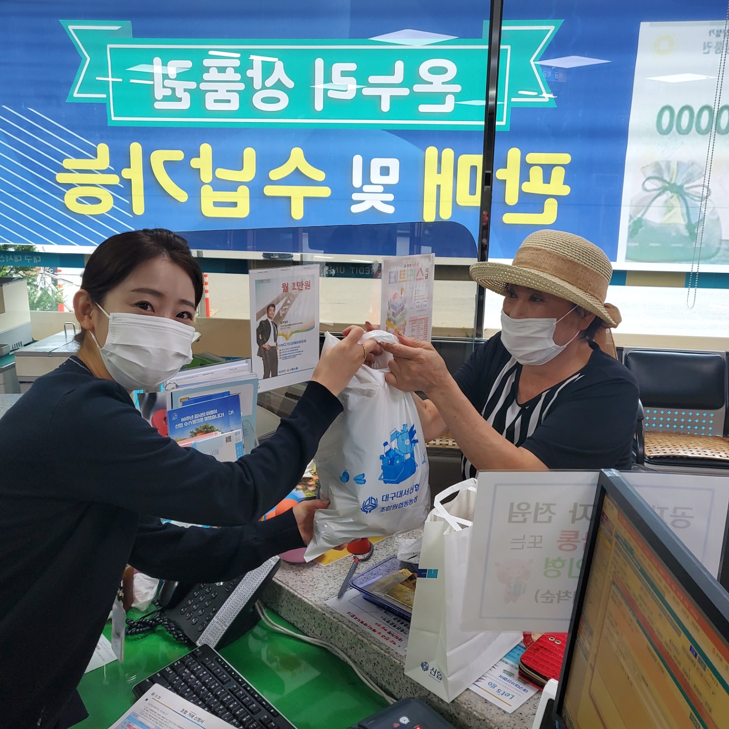 대구대서신협의 조합원농장에서 키운 무공해 작물들을 나누어드리고있습니다.