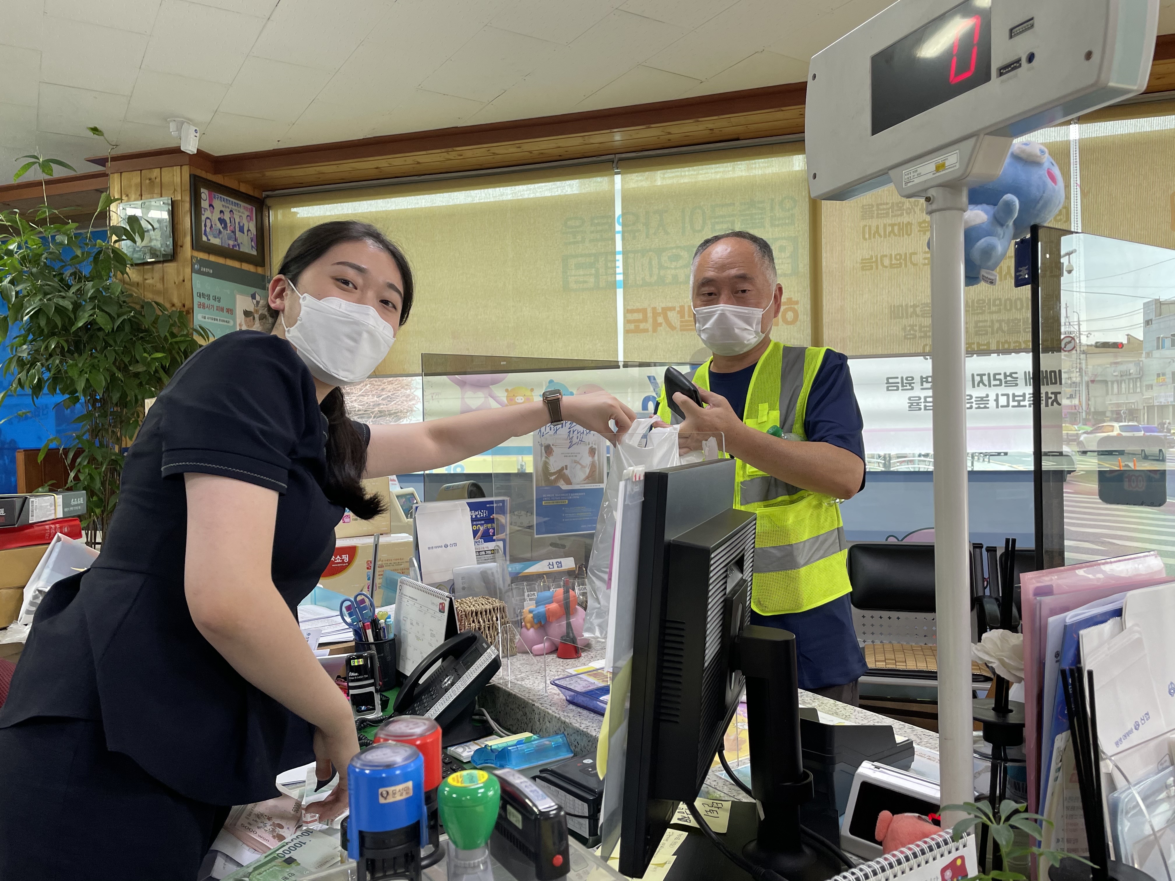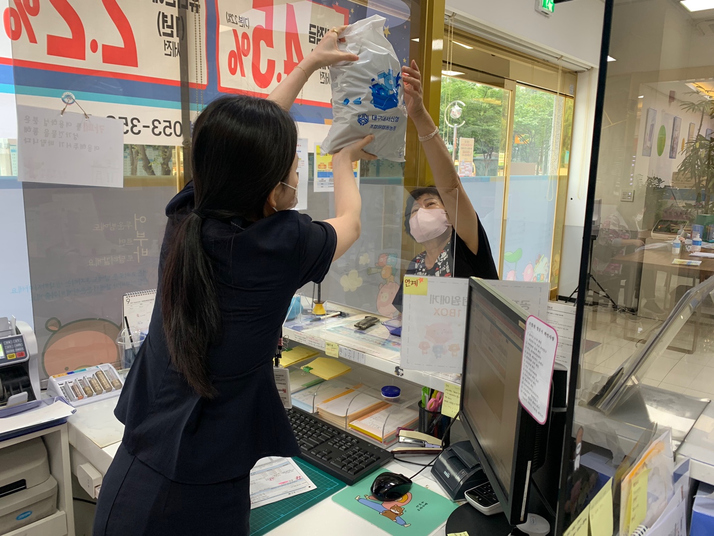 대구대서신협의 조합원농장에서 키운 무공해 작물들을 나누어드리고있습니다.