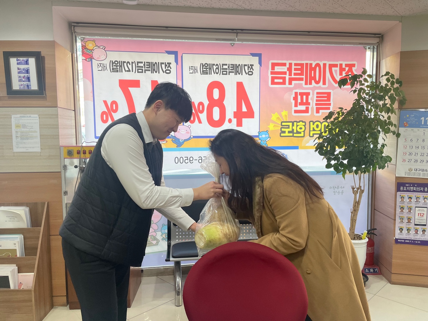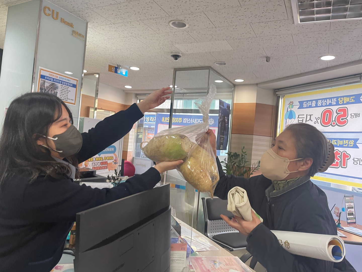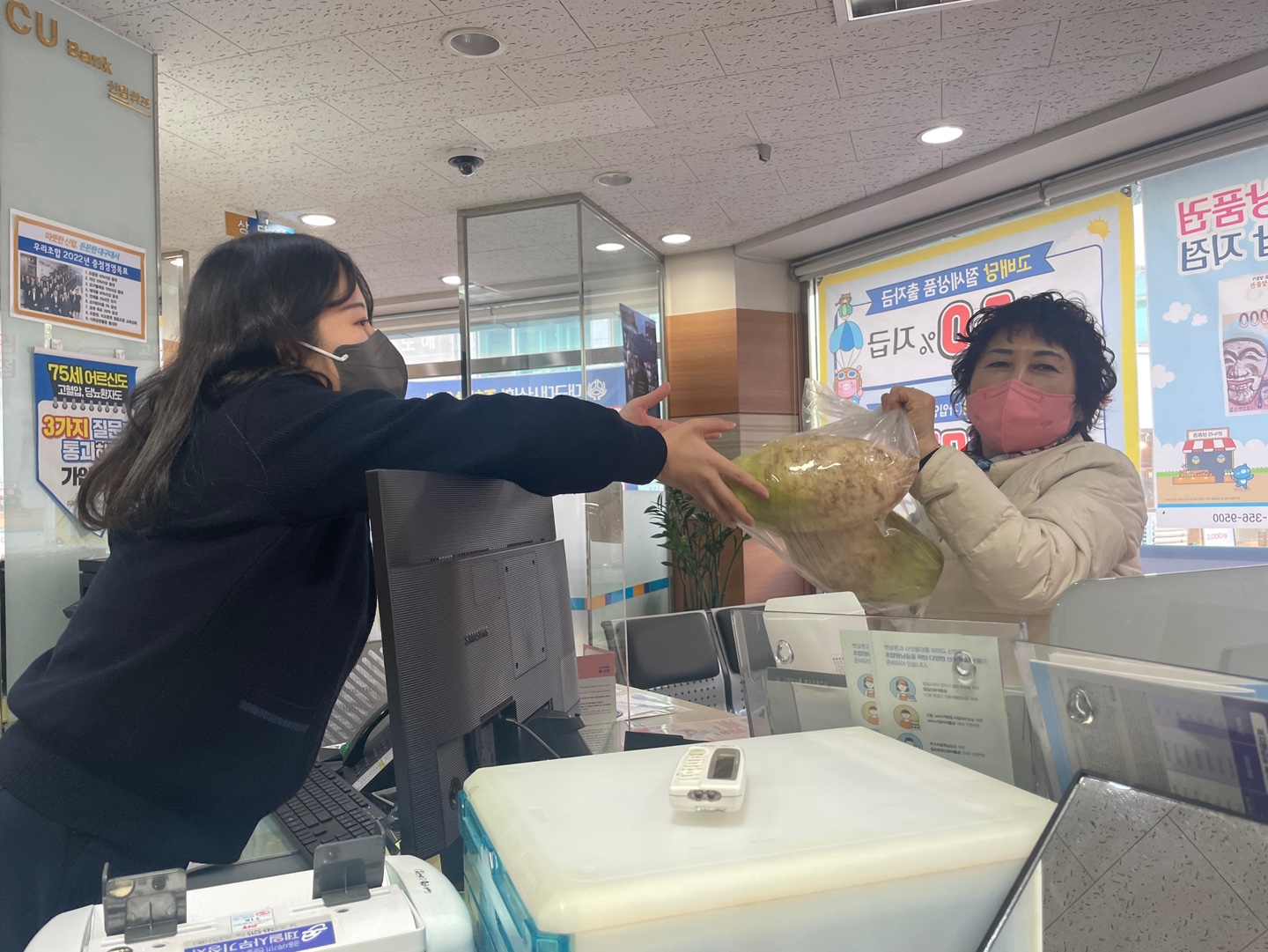 대구대서신협의 조합원농장에서 키운 무공해 작물들을 나누어드리고있습니다.